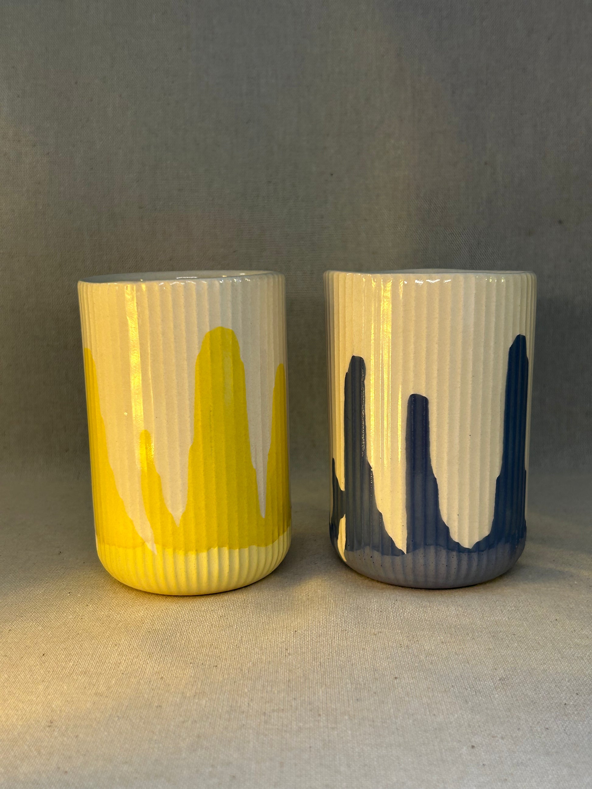 Lacivert & Sarı Tırtıklı Dalga Kupalar